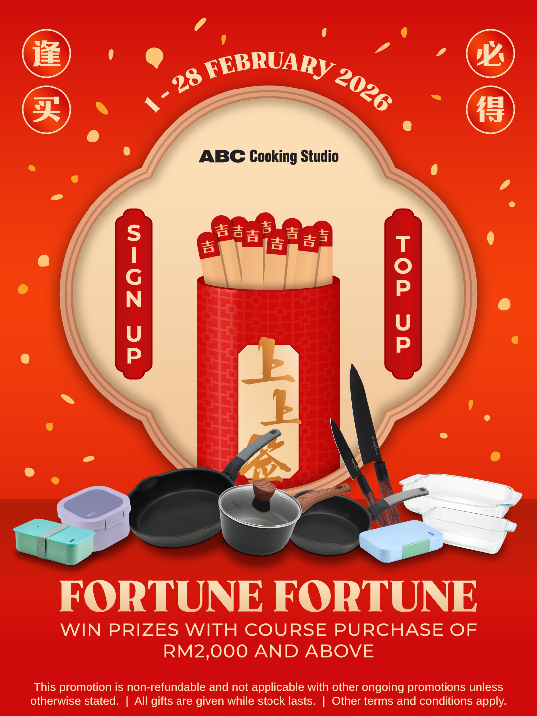 This February, get a chance to draw a fortune stick and let luck decide your reward when you purchase a course of RM2,000 and above. Each stick carries a different blessing, from kitchen utensils to cute foodwares.